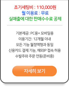 충전형 또는 정산형 체인본부로의 자유 운영 완벽지원 모듈 + 20년 운영 경험 + 기존 업체의 요구 사항 + 다양한 기능 탑재 매월 작업 중 + 국내 최저 비용 + 매출 수수료 없음 |